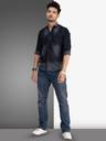 Men Regular Fit Washed Cut Away Collar Casual Shirt