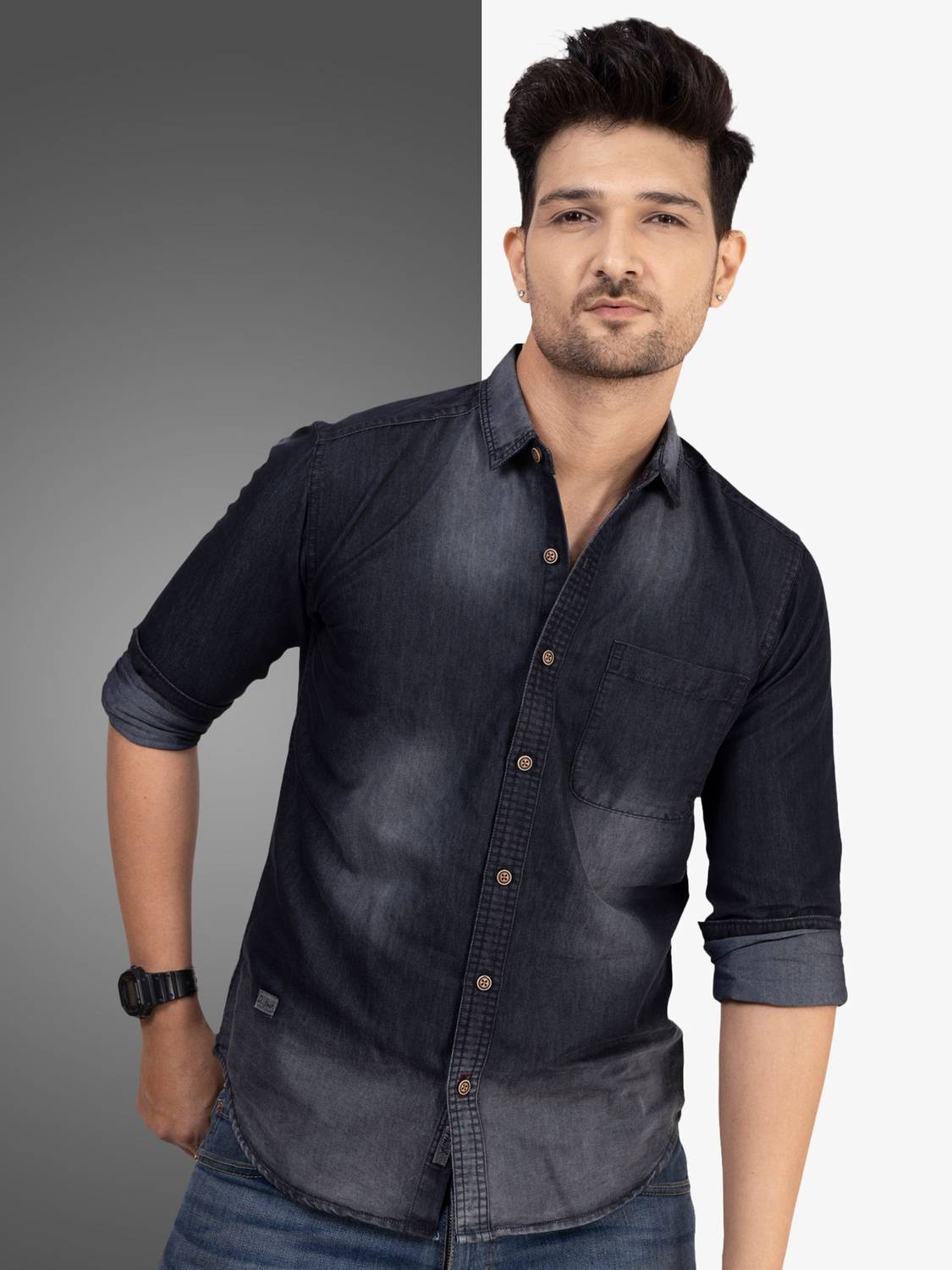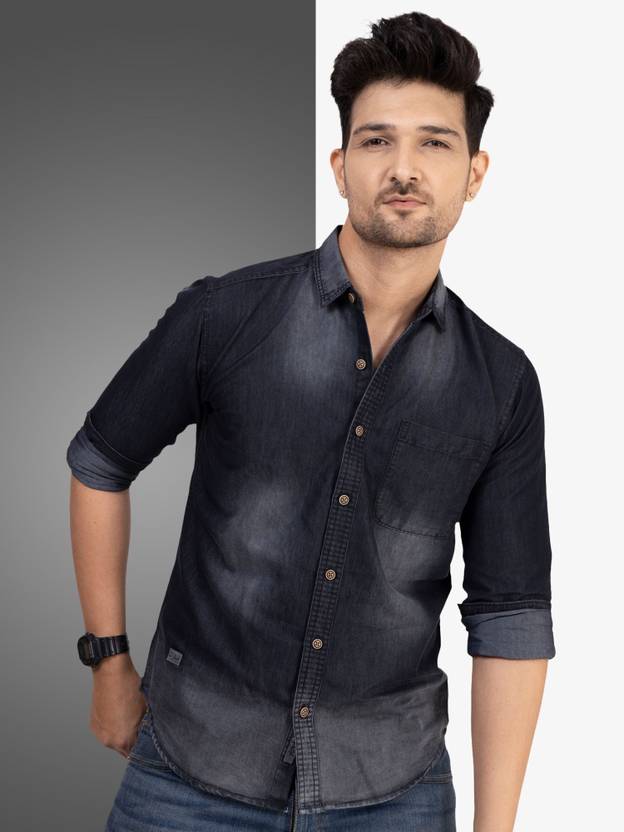 This Denim shirt from D…finish this casual shirt has Spread collar Full sleeves Single Patch pocket on chest curved hemline. Will make you look your casual best. Next time you're going out for drinks with the guys, just put this blue piece with a lightweight shirt and jeans and chinos.