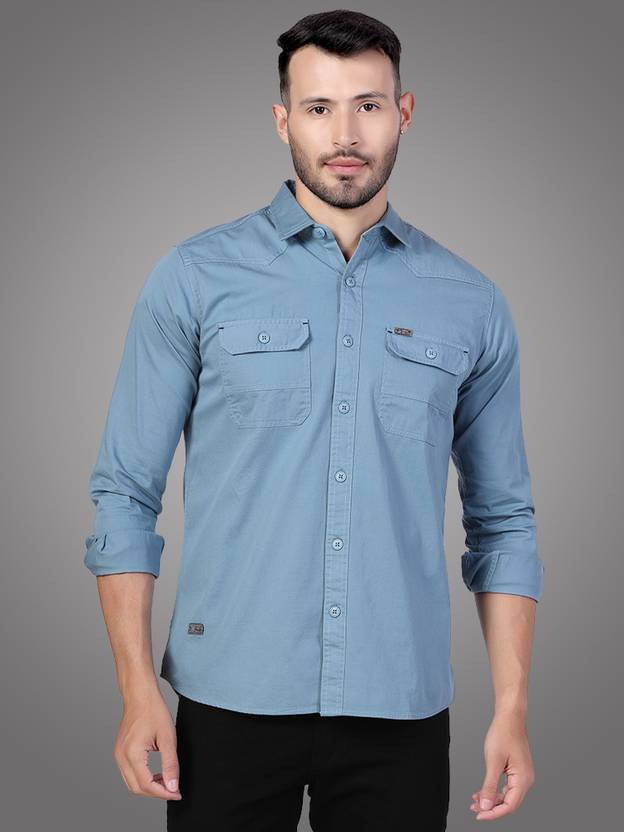 Denim, Double Flap Pocket, Smart Shirts, Solid, Utility Shirts