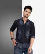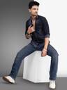 D Finish Men Solid Casual Dark Blue Shirt