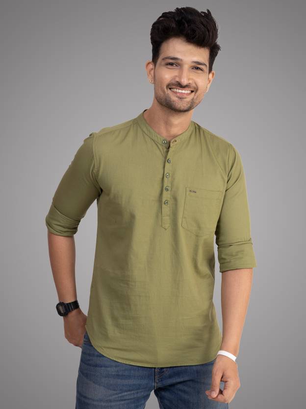 This Pure Cotton Kurta from D…finish this casual Kurta has Mandarin collar Full sleeves single patch pocket on chest curved hemline. Will make you look your casual best. Next time you're going out for drinks with the guys, just put this blue piece with a lightweight shirt and jeans and chinos.