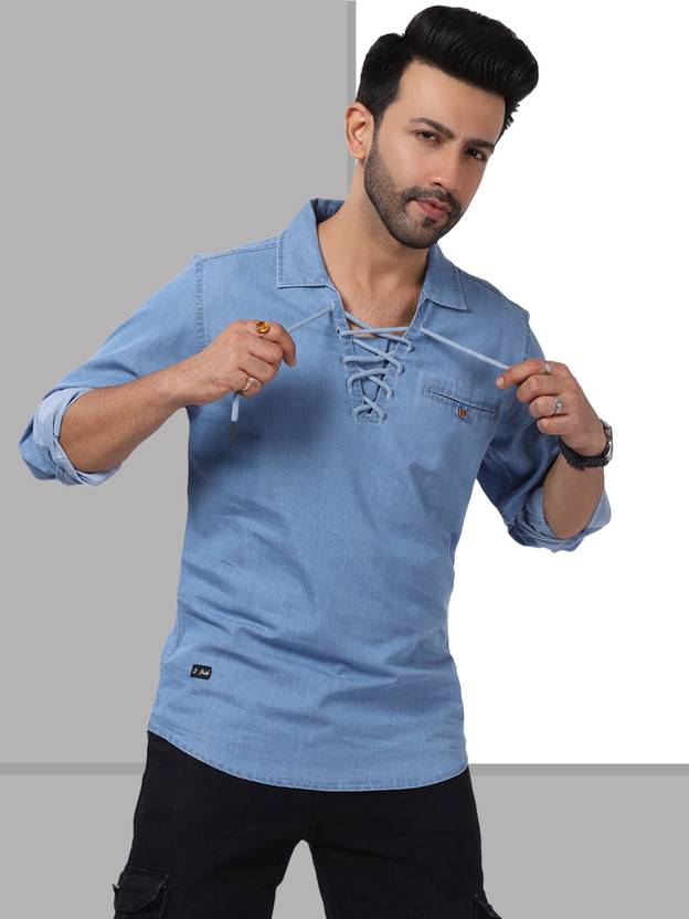 D Finish Men Solid Straight Kurta (Light Blue)