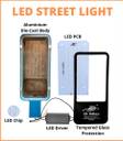 " D'MAK Brings You The BRIGHT LED Street Light eco-friendly and cost-effective alternative. LED Street lights. Application - street light, parking,garden area, industrial unit, hospitals, offices, showrooms, malls,hotels, petrol pumps, bus stops, railway stations, airports, education, gov.Campus, residential colonies, subway, outdoor lighting, general public area, highways, road lights, shipyard, etc *** FEATUres: Bright LED Light with Water proof casing (IP65). Super robust and efficient LED driver. AC voltages from 100V to 300VAC, Ultra Bright Power LEDs (120 lumens each), Total brightness: 120 lm/w, Color: Cool White, Die Cast Aluminium Casing with good heat dissipation for longer life Waterproof (IP65) DRIVER SPECS: THD < 10% Surge Protection > 2kV High Efficiency Built in PFC Function Open circuit protection Short circuit protection Over temperature protection 2 YEAR WARRANTY, Withstand Voltage : I/P - O/P : Min 2kV. * Uses High quality LED drivers (Indian made) High reliability,Very High brightness, Easily replaceable by yourself after the warranty period using readily available drivers if LED driver fails. Hand assembled in India D'MAK using high quality wires and other part :High reliability, High Quality.* Saves Power * Good Quality * Economic