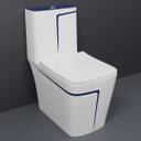 • White commode with Blue Finishing Line and Round Flush Button