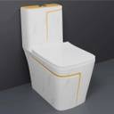 D O T C/T08 Premium Quality White Marble commode with Yellow Finishing Line and Round Flush Button Western Commode (White & Yellow)