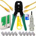 D.V TECH PROFESSIONAL SET OF TWO ETHERNET CABLE, CRIMPER TOOL, NETWORK LAN CABLE TESTER 50PCS OF RJ45 CONNECTOR STRIPPER TOOL 9V BATTERY SET OF CRIMPING TOOL Manual Crimper