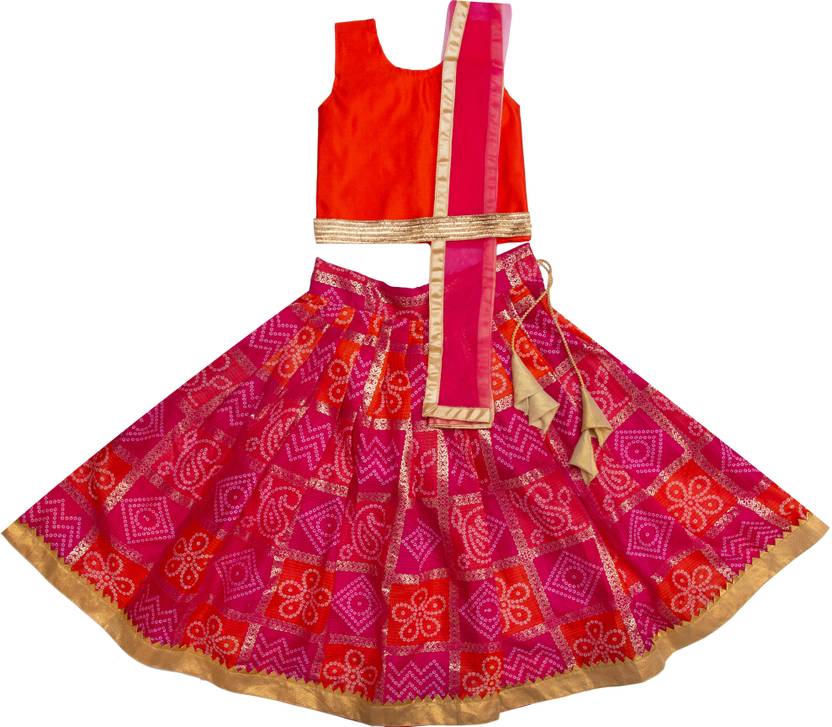 D9Kids Indi Girls Lehenga Choli Ethnic Wear Printed Lehenga, Choli and Dupatta Set (Pink, Pack of 1)