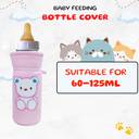 Da Anushi Hosiery Baby Feeding Bottle Cover, Embroided Patch Cartoon Suitable for 60-125ML (Blue, Pink)