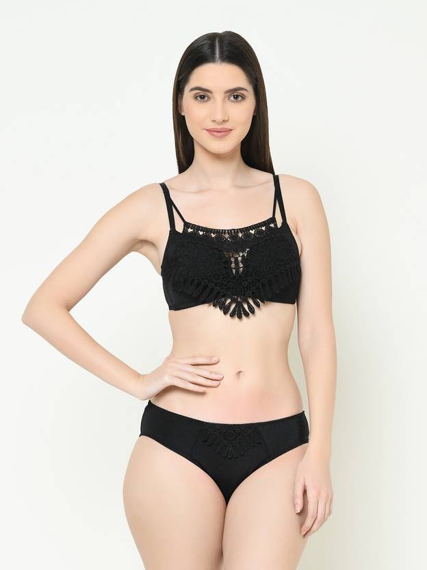 Bra & Panty Set Solid Black Lingerie Set