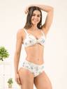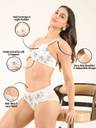 This beautifully designed lingerie set DI-001-WHITE, crafted from breathable cotton that feels soft on sensitive skin and ideal for daily wear. Featuring adjustable straps and a hook & eye closure for a secure, customized fit, this set combines functionality with style through its cut & sew design that enhances shaping and durability. The underwired, lightly padded cups provide superior lift and modest coverage, while the full-coverage fit ensures confidence and comfort. Finished with a playful printed design and mid-rise, mid-waist bottoms, this set offers all-day breathability and ease of movement for effortless wear.