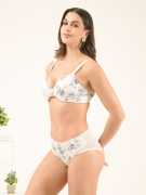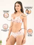Cotton Lightly Padded Wired Full Coverage Floral Printed Bra & Panty Set Lingerie Set