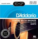 An ultra-fine layer of EXP Coating is bonded to the 80/20 bronze wrap wire which is then wound onto the hex-shaped core wire. The result is a built-in barrier against the corrosion and wear that can quickly sap the life out of your strings and your sound . EXP 80/20 Bronze strings have a natural round wound feel and extra-bright tone that lasts three to four times longer than traditional guitar strings. D'Addario's best selling 80/20 Bronze gauge, EXP11s offer the ideal balance of volume, projection and comfortable playability. D'Addario EXPs are the most natural-sounding, longest-lasting coated strings available. EXP Coated Technology starts with the highest quality wrap wire materials, precision drawn and micro-coated on our advanced proprietary machinery. Strings are then wound normally, delivering tone and feel identical to D'Addario's world renowned acoustic strings, with a minimum of 4 times more life. You won't believe they are coated. D'Addario, the world's largest manufacturer of musical instrument strings, is known as The Players Choice with a reputation for unsurpassed quality and consistency. D'Addario's innovative, packaging reduces waste and provides protection from corrosion. All D'Addario strings are manufactured in the U.S.A. using proprietary, digitally controlled, state-of-the-art machinery for unmatched performance, set after set.