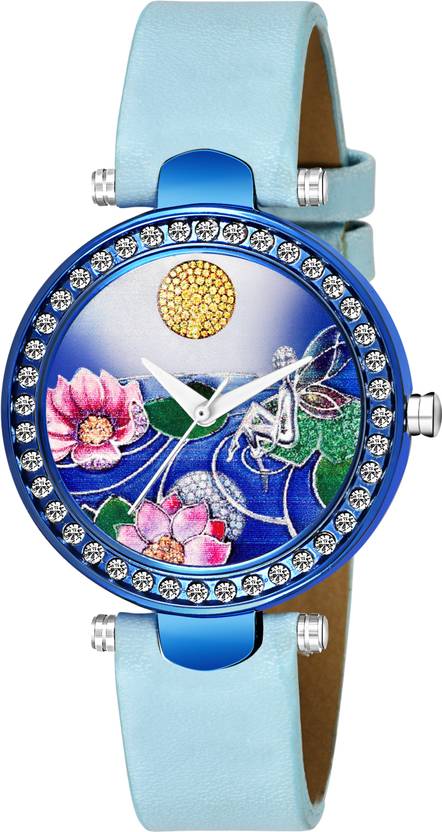 Amazing Baby BLUE Butterfly Diamond Dial And BLUE Plastic Belt Watch For Girls And Women Bracelet Analog Watch For Women Analog Watch - For Girls