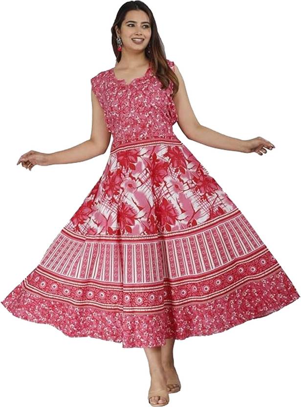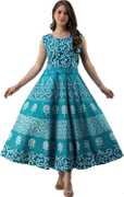 Women's Cotton Rajasthani Jaipuri Traditional Printed Maxi Dress