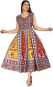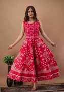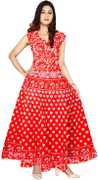 DADUDAYAL brings to you this traditional designer maxi dress in stunning Jaipuri prints and colors. This breezy dress can be best worn to any party, festivals, casually in college, hang outs etc. for an elegant and smart look.
