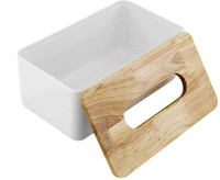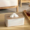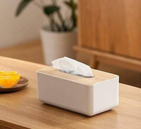 Made from a sturdy combination of materials, this holder offers a durable plastic body with a wooden lid. The mix of materials offers both strength and a natural finish, blending functional design with a simple aesthetic. Moreover, the plastic material is made to be unbreakable under normal use. Furthermore, the wooden top adds a clean look and helps secure the tissues inside.