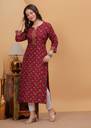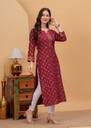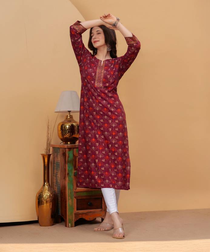 Women Printed Viscose Rayon A-line Kurta (Maroon)