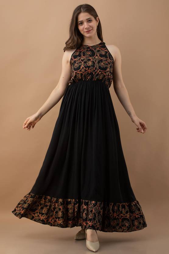 Daevish Women A-line Multicolor Maxi/Full Length Dress