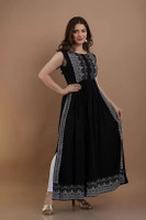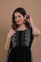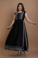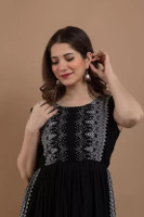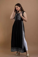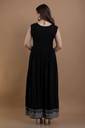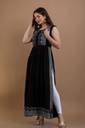 The dress exudes timeless simplicity with its sleeveless silhouette and traditional round neckline. A round neck creates a lovely, versatile neckline that can go with a lot of different looks. Its understated yet elegant appearance makes it appropriate for many situations. In addition to adding a modern touch, the sleeveless design maximises movement and keeps you cool while you're out and about or on warmer days.