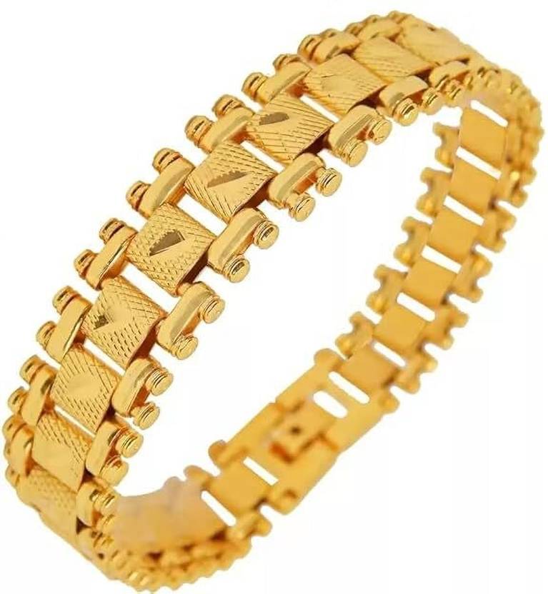 Upgrade your style with this elegant gold plated bracelet crafted on a high-quality copper base. Designed with a bold and classy chain pattern, this bracelet gives a rich gold look while ensuring durability and comfort.