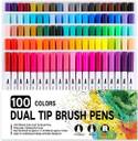 • 100 Different Shades Dual Tip Brush Pens Marker, Watercolor, Odorless, Non-toxic, Acid Free, 1-2mm Brush Tip & 0.4mm Fine Tip, Flawless