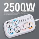 • International 6 AC outlets and 4 smart USB ports flat plug can charge 6 electrical devices or electronics simultaneously, such as tablets, laptops, lamps, cameras, phones, etc. This small power strip supports a range of voltage 100-220V., This flat plug extension cord with 4 USB charging ports provide 10 A/2500W in total. Built-in smart charging technology that detects and deliver an ideal input current of up to 10A (the actual current is decided by the demand for the devices)., Environmental protection and fire-resistance PC shell with flame resistant material makes it more durable and longer lifetime. This 10Amp power outlet is high-quality made with ABS+PC fire-resistant material., It is a lightweight and small size, easy to carry and best for travel1.8 meter power cord makes it more flexible, get easy access to the place that's hard to reach, you still can play your iPad or video game when charging.