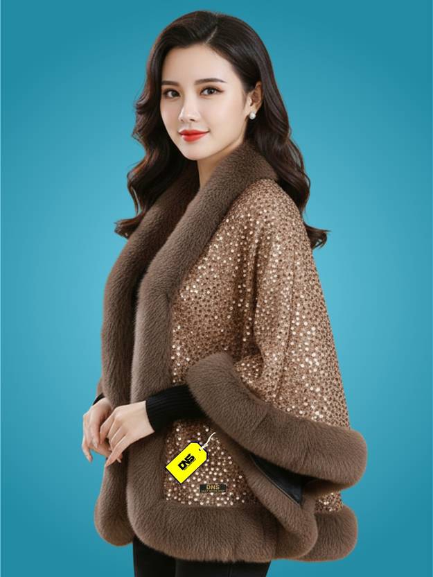 This stylish Poncho showcases a luxurious and elegant design, crafted with a shimmering textured fabric that instantly adds a glamorous touch to any outfit. It features soft faux-fur detailing along the neckline, front opening, and hem, giving it a rich, cozy, and premium look. The relaxed cape-style silhouette drapes beautifully over the shoulders, ensuring comfort while enhancing overall style. With its open-front design, this Poncho is easy to layer over dresses, tops, or winter wear, making it a perfect choice for parties, festive occasions, evening outings, or special events. Designed to combine warmth with sophistication, it is an ideal statement piece for a refined and fashionable winter wardrobe.
