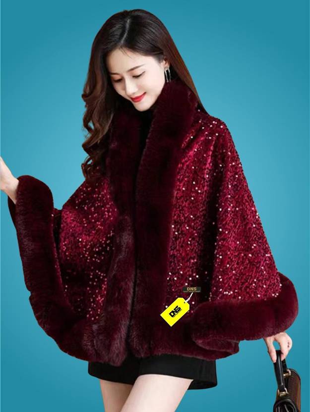 This stylish Poncho showcases a luxurious and elegant design, crafted with a shimmering textured fabric that instantly adds a glamorous touch to any outfit. It features soft faux-fur detailing along the neckline, front opening, and hem, giving it a rich, cozy, and premium look. The relaxed cape-style silhouette drapes beautifully over the shoulders, ensuring comfort while enhancing overall style. With its open-front design, this Poncho is easy to layer over dresses, tops, or winter wear, making it a perfect choice for parties, festive occasions, evening outings, or special events. Designed to combine warmth with sophistication, it is an ideal statement piece for a refined and fashionable winter wardrobe.