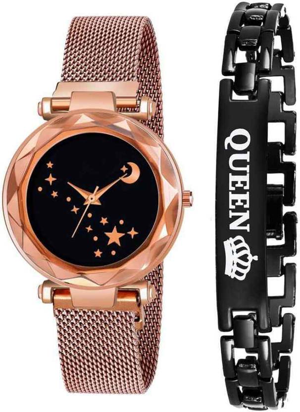 Rose Gold Star Dial Magnet Milestone Strap Queen Bracelet Combo Analog Watch - For Women 425-QUEEN
