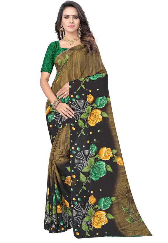 Floral Print Sambalpuri Georgette Saree (Green)