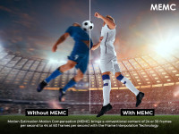 Motion Estimation, Motion Compensation brings a conventional content of 24 to 30 frames per second to 60 frames per second with the Frame Interpolation Technology.The added frames result in smooth blur-free visuals and lively transitions while watching sports or playing games