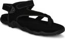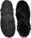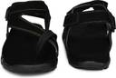 This product is a black sandal designed for casual or outdoor wear, featuring an open-toe construction with a toe loop and supportive straps secured by velcro closures and a side button attachment. The sandal combines functional comfort with a rugged sole suitable for varied terrains, and visible contrasting stitching adds both durability and visual appeal. This men's sandal is crafted from black suede material, featuring a unique toe loop and double-strap design for enhanced grip and support. The sandal sports a sturdy rubber outsole with textured grip, making it ideal for both everyday casual use and light outdoor activities. Adjustable velcro straps allow for a custom fit around the ankle and instep, while the cushioned footbed provides all-day comfort.