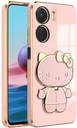 Dallao Back Cover for Vivo T2X 5G, Vivo Y16 3D Kitty with Folding Mirror Stand Slim electroplated case Soft TPU (Pink, Shock Proof, Silicon, Pack of: 1)