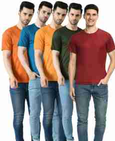 Newsingh Pack of 5 Men Solid Round Neck Polyester Multicolor T-Shirt