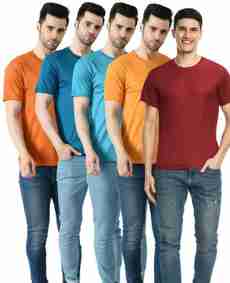 Newsingh Pack of 5 Men Solid Round Neck Polyester Multicolor T-Shirt