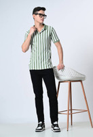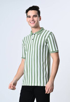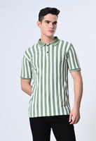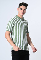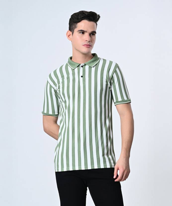 Dam Striped Men Polo Neck Dark Green, White T-Shirt