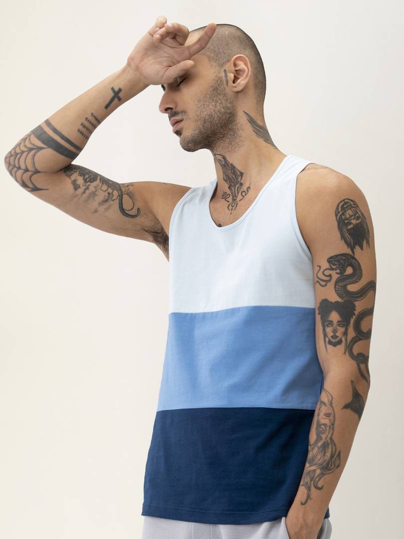 Neo Cool Men Printed Colorblock Round Neck Tank Top