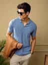 Damensch Solid Men Polo Neck Blue T-Shirt