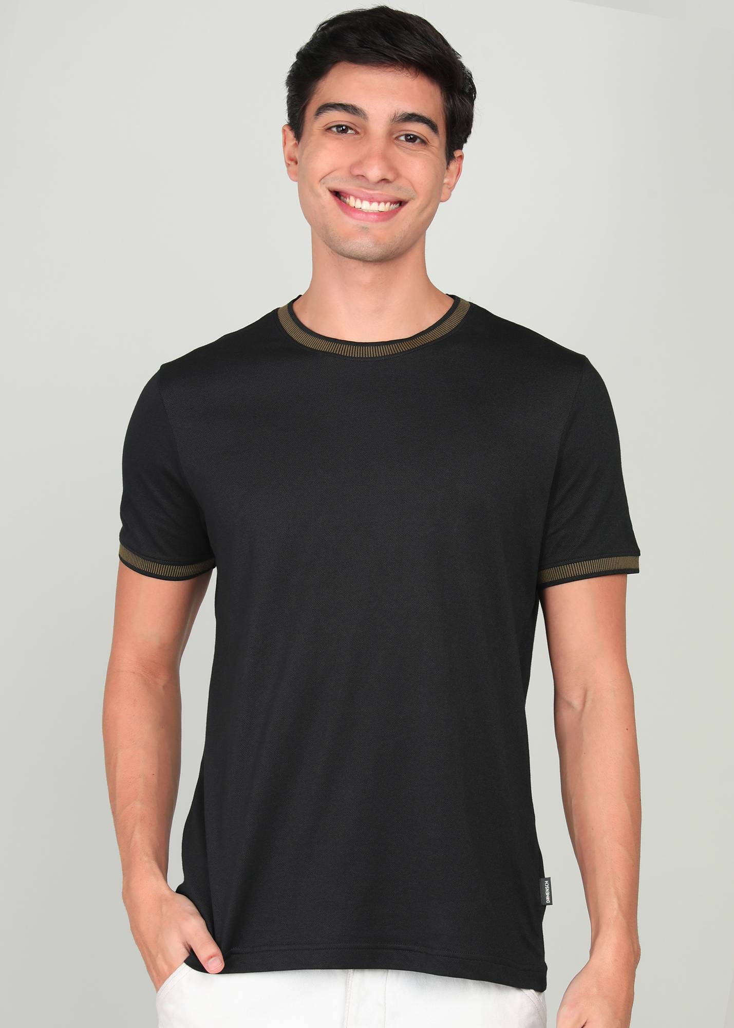 Damensch Men Solid Round Neck Cotton Blend Black T-Shirt