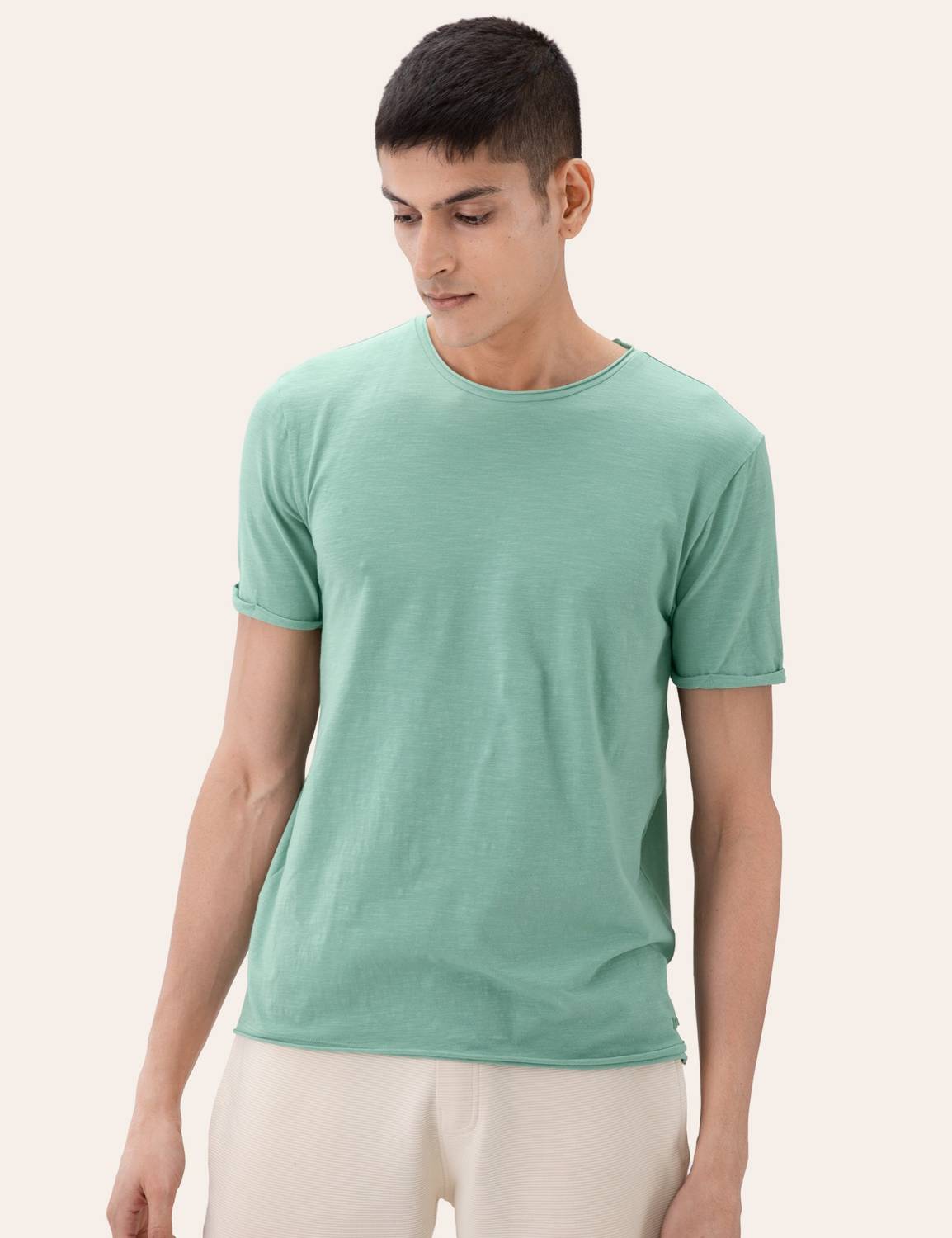 1. The right fit matters: Body adaptive fabric blend in the raw edge distressed t-shirts provides greater comfort and stylish trim look. Itās ridiculously body-flattering. 2. Call it FluidiTee: Made of a superior cotton-elastane blend, the fabric in this t-shirt falls every so smoothly on your body. Itās adaptive to your movements and shape, making your style absolutely effortless and freeing. 3. Innovative dye tech: These slim fit T-Shirts for men feature long lasting colours created by High-IQ, a programme that enables for better colour retention and reduced carbon footprint.