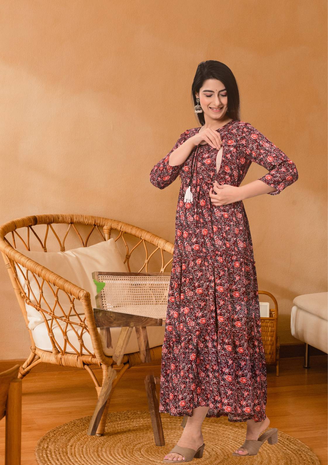 This Rayon Gown is very comfortable for every mother to be. Made with super soft & flowy rayon fabric. Rayon Shrinks on washing and additional margins are added for this purpose.Feeding Kurti For Women - Soft & Cozy Women’s Nursing Kurti; Discreet Zipper - This soft Maternity and Nursing Kurti features 2 discreet Zipper for easy baby feeding. This great feature is also convenient as a maternity