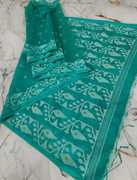 Damudar sarees Woven Jamdani Muslin Saree (Light Green)