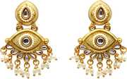 hese long earrings with gold plating and studded with white stones with in palki design will instantly rev up your outfits. Add these to your jewellery collection and style with suits, sarees and indo-western dresses to add some colorful twist to your wardrobe.
