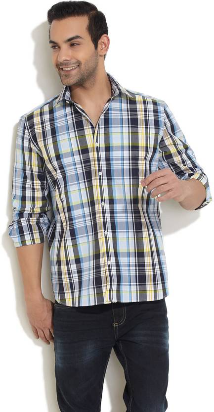 A classy addition to your casual wardrobe. This sporty shirt comes with yarn dyed checks throughout and a button down collar. Constructed from emerised cotton poplin, it gives you the finest feel and comfort. Single pocket with the brand logo allows you to keep your essentials. Team it up with slim fit denims and boat shoes for a smart & handsome look.