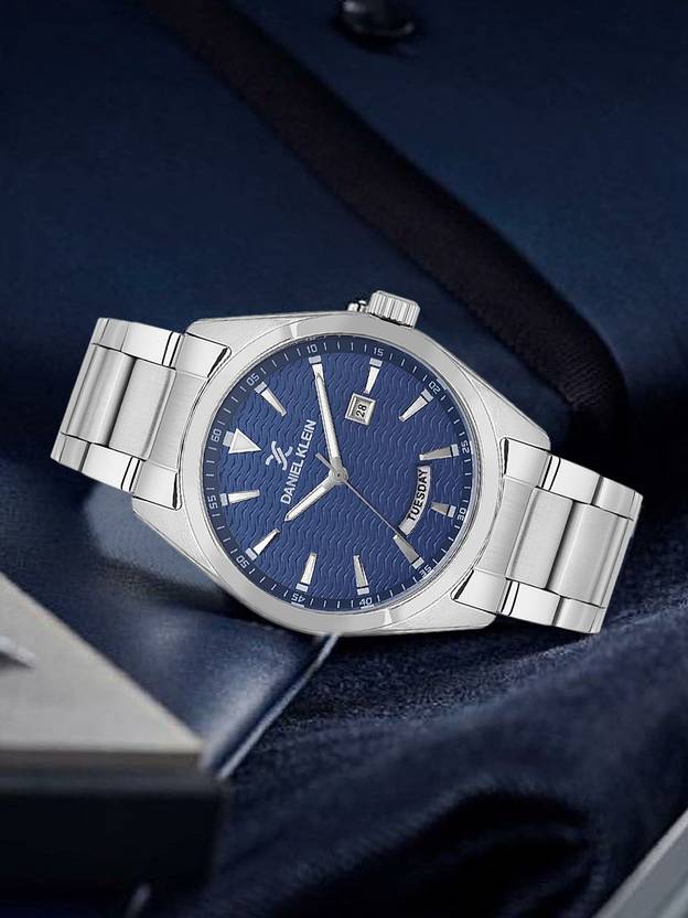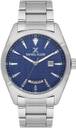 A premium masculine watch featuring a dark blue embossed dial with real indices, a stainless steel IPS case and strap, powered by VX44E114 quartz movement with 5ATM water resistance. Perfect for men seeking a bold and elegant statement accessory.