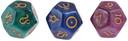 | Key Features | - Unique Astrological Design – Each die features astrological symbols, including planetary glyphs and zodiac signs, making them perfect for divination, astrology readings, or tabletop RPGs., High-Quality Resin Material – Made of durable, pearl-like resin with a glossy finish and gold-painted engravings for an elegant and mystical appearance., Versatile Use – Ideal for astrology enthusiasts, tarot readers, or anyone interested in cosmic guidance, fortune-telling, and esoteric studies., Beautiful Color Variations – The set includes three distinct dice in deep blue, emerald green, and shimmering purple, adding a touch of aesthetic charm to any collection., Perfect Gift for Astrology Lovers – A thoughtful and unique present for friends, family, or anyone fascinated by astrology, mysticism, or alternative spirituality.