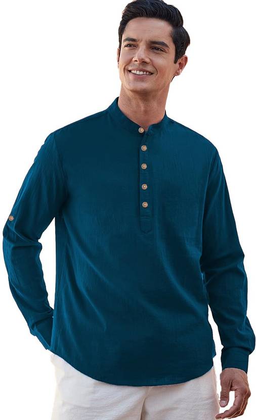 This Cotton Blend short kurta is perfect for men who value style and comfort. Its versatile design makes it ideal for any occasion—festivals, parties, or casual outings. Product Details 📋 👨‍🦰 Gender: Men 🎨 Pattern: Solid 🧵 Design Type: Plain 🔘 Closure: Button 👕 Sleeve: Full Sleeve (Roll-Up Option) ⬆️ Waist Rise: Mid-Rise 🪡 Collar: Mandarin/Chinese ✂️ Hemline: Curved 🌿 Fabric: Cotton Blend 📏 Product Length: Short 📦 Pack of: 1 Material & Care 🧺 Fabric: Cotton Blend Wash: Suitable for hand wash and machine wash. How to Style 🎯 Pair it with dark-wash denim or linen trousers for a casual look. Dress it up with a pair of churidar or slim-fit pants for festive occasions. Add leather sandals or loafers and a wristwatch for a classy finish. Roll up the sleeves for a relaxed vibe during daytime events. This short kurta seamlessly blends traditional elegance with modern styling, making it a wardrobe essential for every man! 👌"