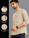 This Cotton Blend short kurta is perfect for men who value style and comfort. Its versatile design makes it ideal for any occasion—festivals, parties, or casual outings. Product Details 📋 👨🦰 Gender: Men 🎨 Pattern: Solid 🧵 Design Type: Plain 🔘 Closure: Button 👕 Sleeve: Full Sleeve (Roll-Up Option) ⬆️ Waist Rise: Mid-Rise 🪡 Collar: Mandarin/Chinese ✂️ Hemline: Curved 🌿 Fabric: Cotton Blend 📏 Product Length: Short 📦 Pack of: 2 Material & Care 🧺 Fabric: Cotton Blend Wash: Suitable for hand wash and machine wash. How to Style 🎯 Pair it with dark-wash denim or linen trousers for a casual look. Dress it up with a pair of churidar or slim-fit pants for festive occasions. Add leather sandals or loafers and a wristwatch for a classy finish. Roll up the sleeves for a relaxed vibe during daytime events. This short kurta seamlessly blends traditional elegance with modern styling, making it a wardrobe essential for every man! 👌"