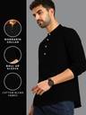 DaReal Men Solid Cotton Blend Straight Kurta (Black)