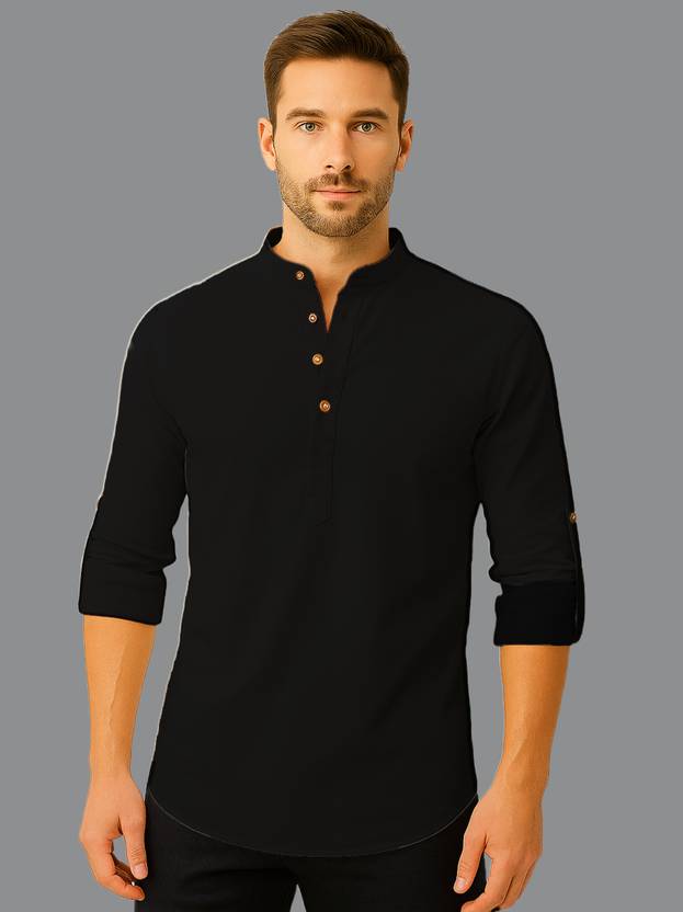 This Cotton Blend short kurta is perfect for men who value style and comfort. Its versatile design makes it ideal for any occasion—festivals, parties, or casual outings. Product Details 📋 👨‍🦰 Gender: Men 🎨 Pattern: Solid 🧵 Design Type: Plain 🔘 Closure: Button 👕 Sleeve: Full Sleeve (Roll-Up Option) ⬆️ Waist Rise: Mid-Rise 🪡 Collar: Mandarin/Chinese ✂️ Hemline: Curved 🌿 Fabric: Cotton Blend 📏 Product Length: Short 📦 Pack of: 1 Material & Care 🧺 Fabric: Cotton Blend Wash: Suitable for hand wash and machine wash. How to Style 🎯 Pair it with dark-wash denim or linen trousers for a casual look. Dress it up with a pair of churidar or slim-fit pants for festive occasions. Add leather sandals or loafers and a wristwatch for a classy finish. Roll up the sleeves for a relaxed vibe during daytime events. This short kurta seamlessly blends traditional elegance with modern styling, making it a wardrobe essential for every man! 👌"